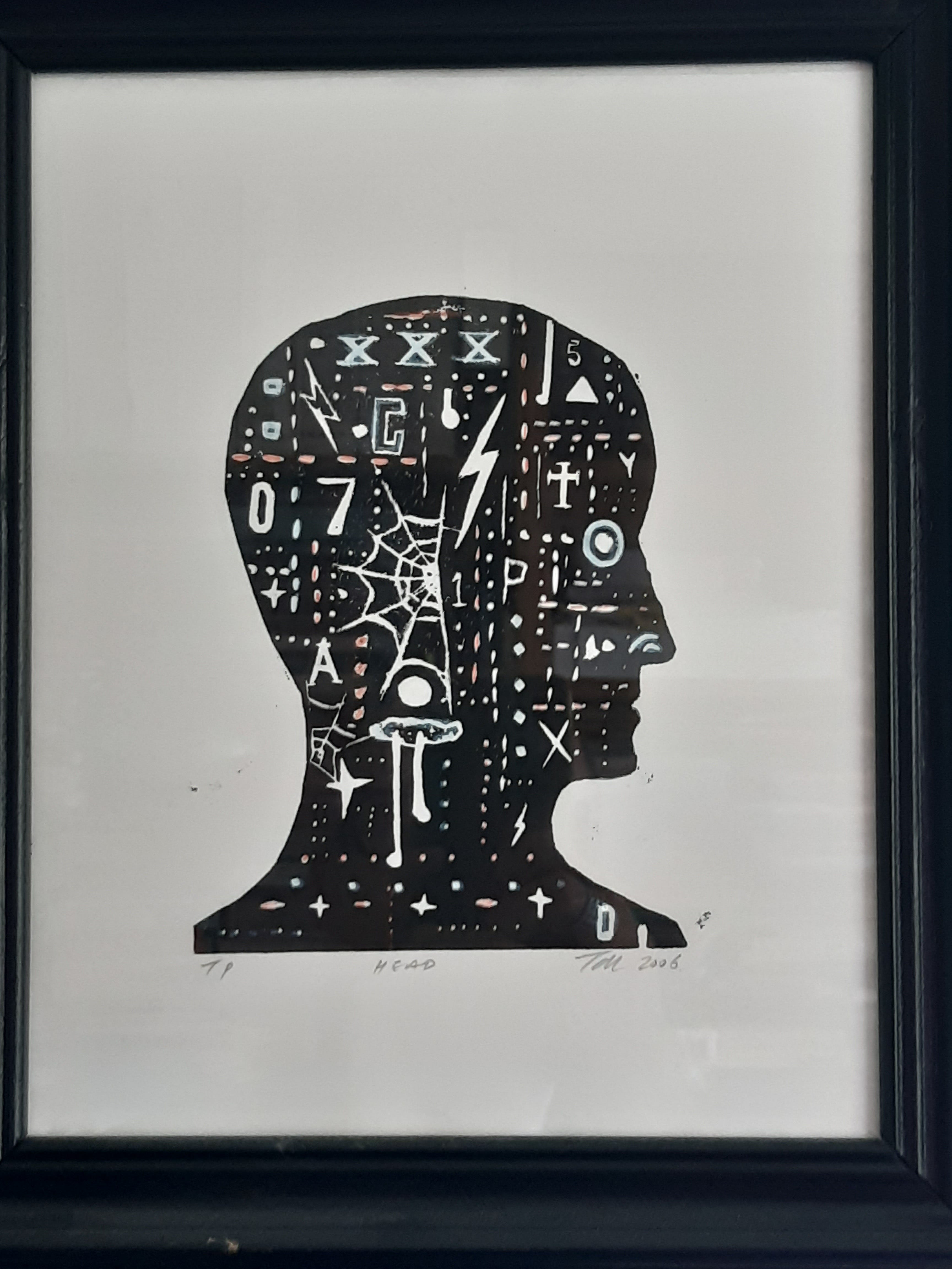 Tony de Lautour’s Trial Proof of his “Head” hangs on my office wall as both a reminder and articulation of the issue getting all that occurs within your head out into coherent expression and representation. Ideas have a pre-life but which means somewhere to come from and be related to; but they also need to able to be understood and engaged with by more than just the person putting them forward.